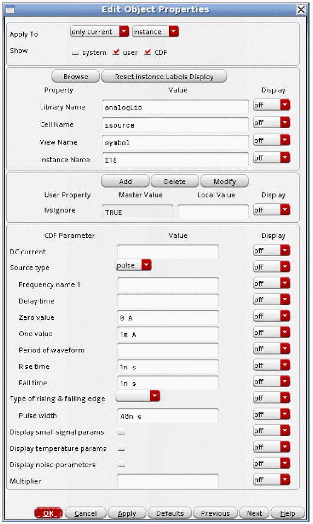 - Set the Zero value to 0 (zero). The pulse starts at the zero value. With zero amps, the isource is a perfect open, so it does not load the circuit.