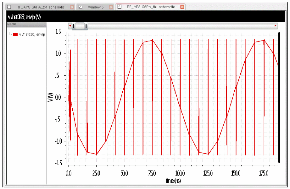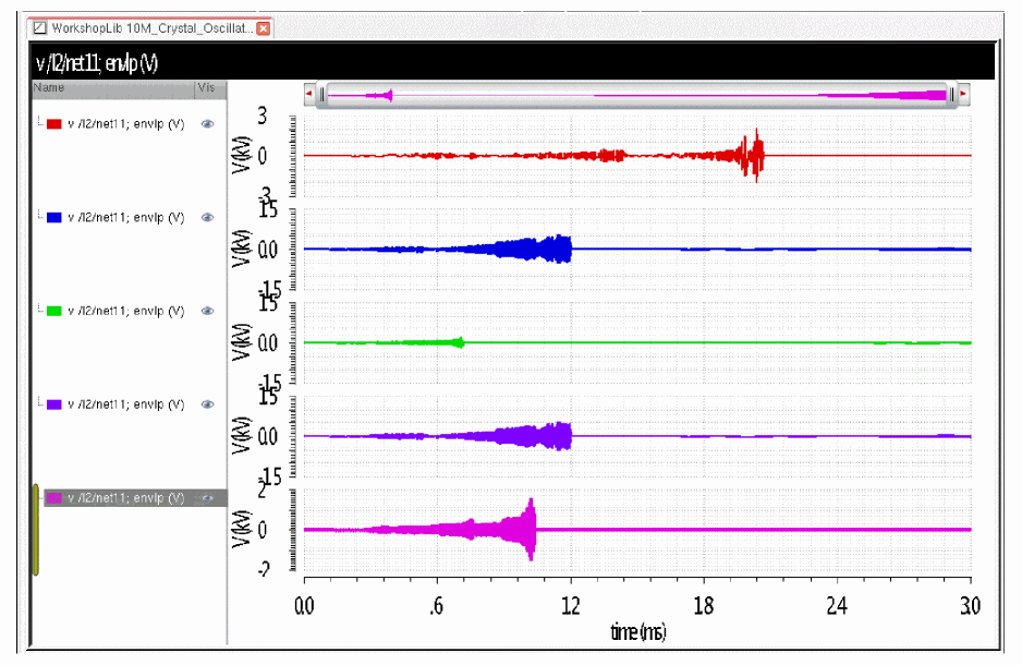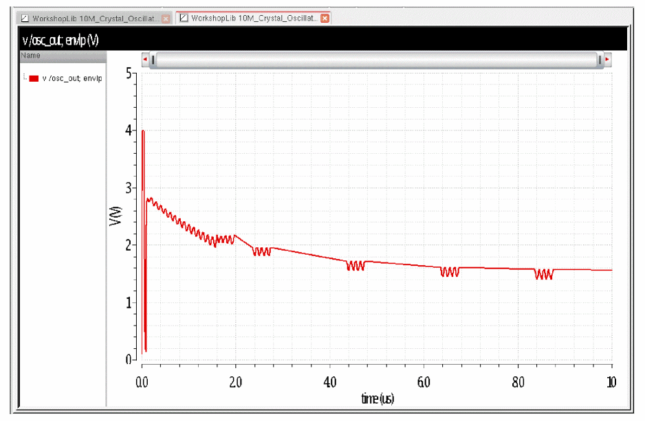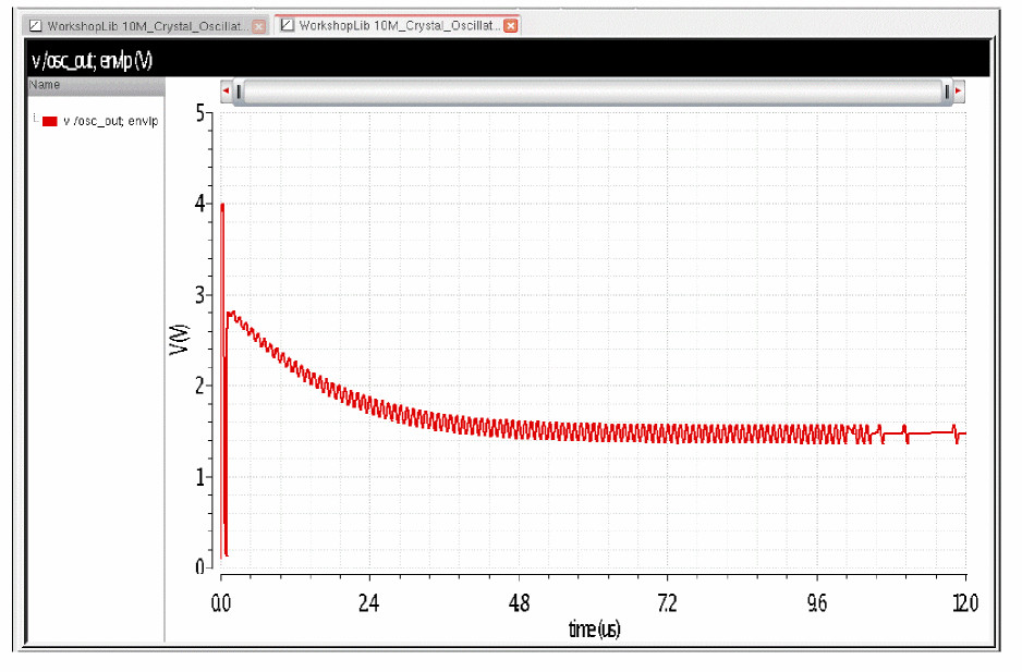 Also, in some circuits, the initial pulse that is used to start the oscillator can cause large transients at the beginning of the envelope analysis and cause problems with the determination of the frequency at the beginning of the simulation. To determine if this is the case, look at the startup waveform at the beginning of the simulation.