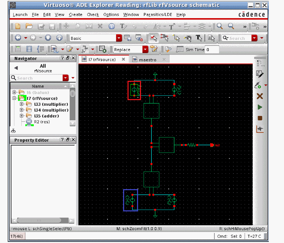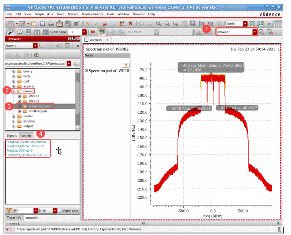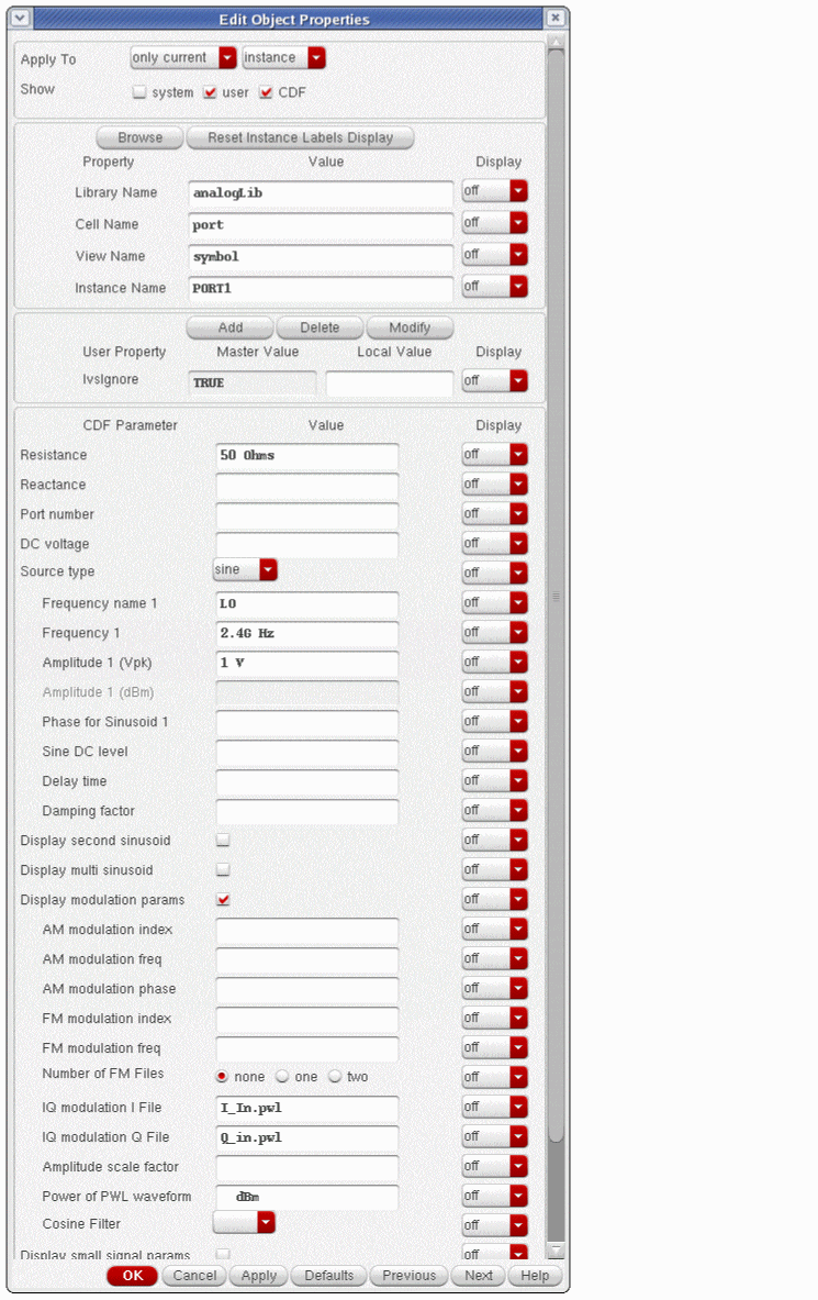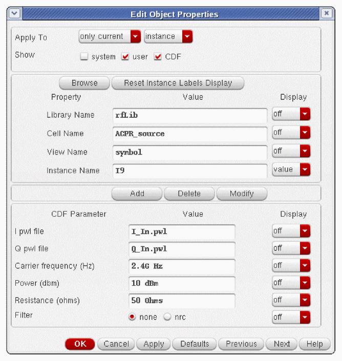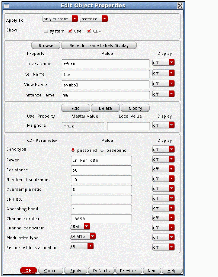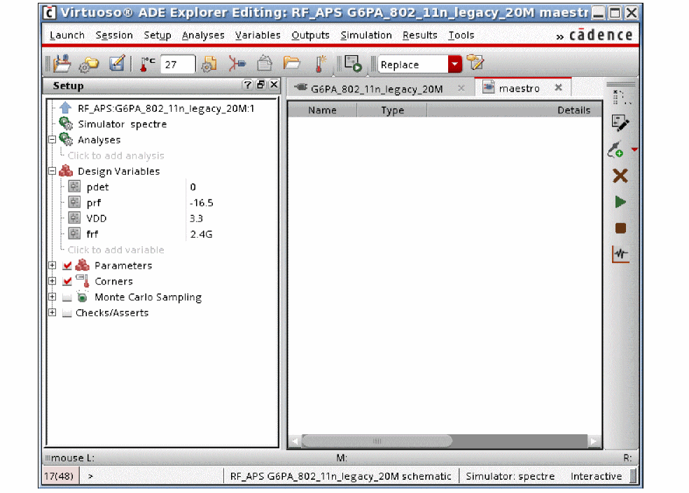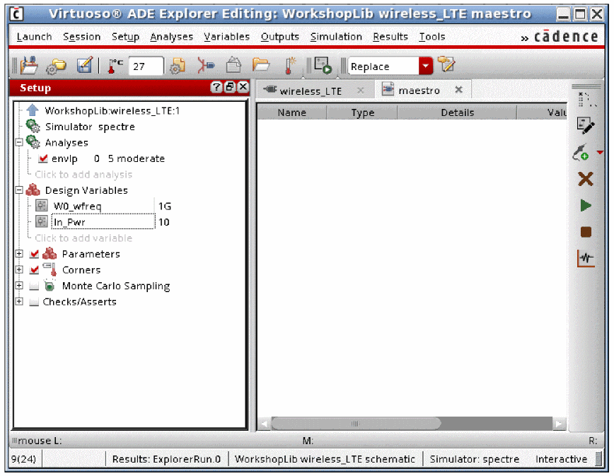 Now run the simulation from the ADE Explorer window. When you start the simulation for the first time, a variable W0_wfreq is introduced into the ADE variables list. This variable is used only when modulators are present in the design, and this variable should be used to set the LO frequency in the modulator. The actual frequency used in simulation is defined by the frequency range and channel number that is defined in the RF source.