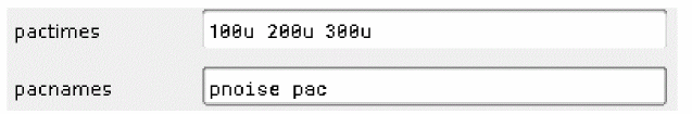 This option is used in combination with pactimes. Specify a list of the small-signal analyses pac, pxf, pnoise, and/or psp in this option field, and these analyses will be run at the times specified in pactimes. The default is to not run any small-signal analyses.