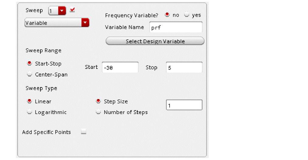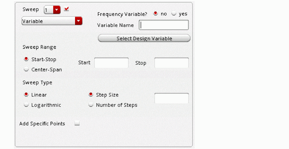 Select the Sweep check box. The Sweep options are displayed, as shown below.