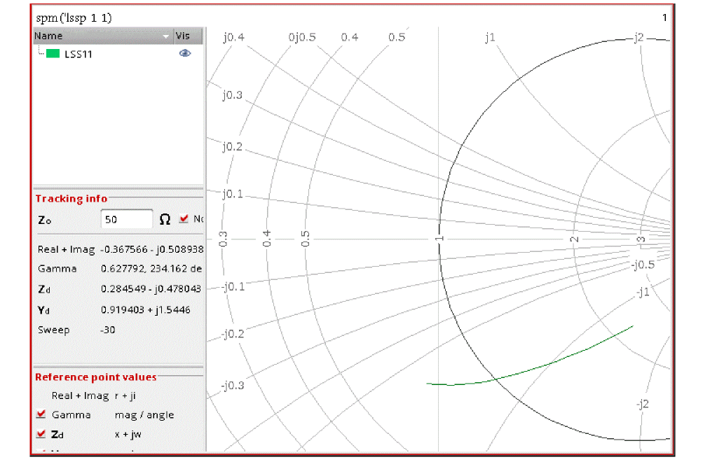 The input reflection coefficient is displayed on the Smith chart, as shown below.