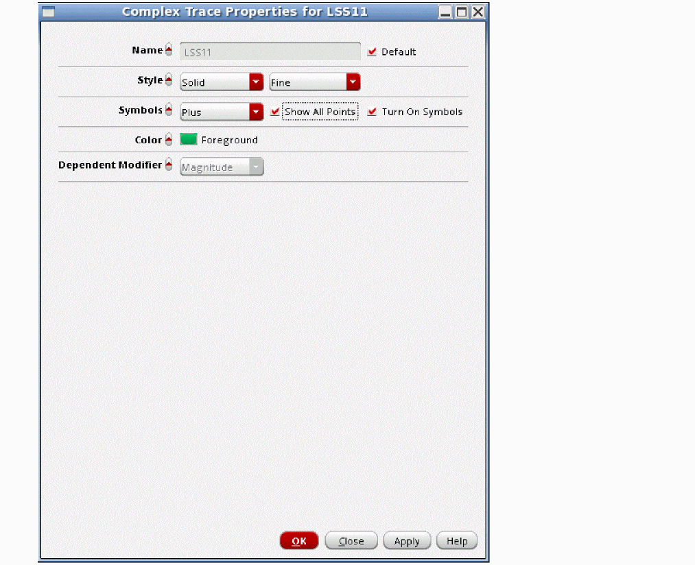 Double-click the trace legend. The Complex Trace Properties for LSS11 window is displayed, as shown below.