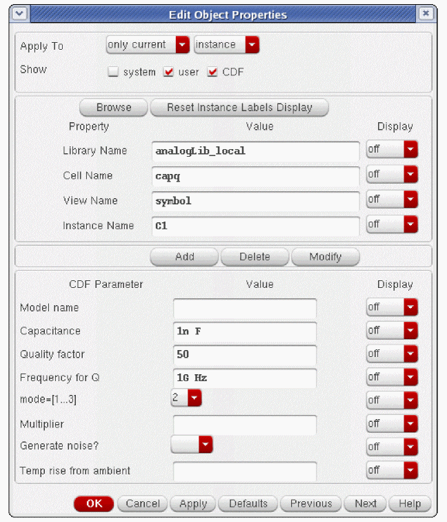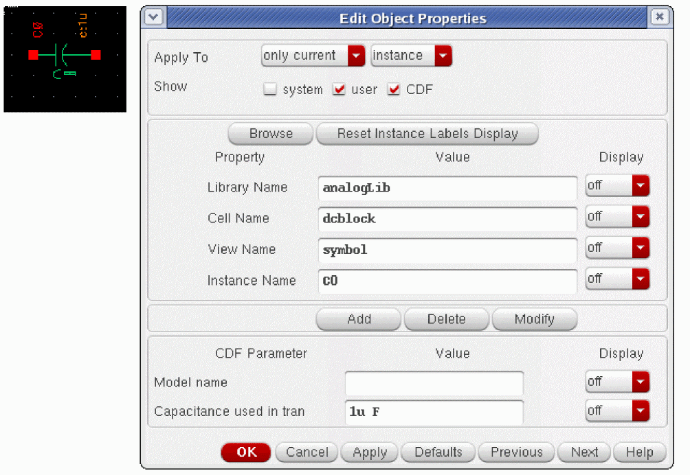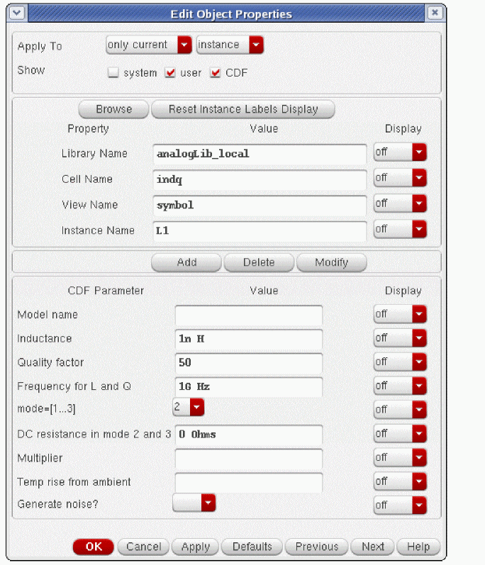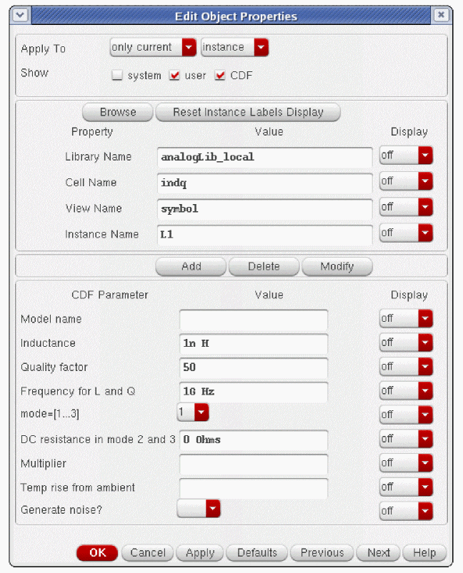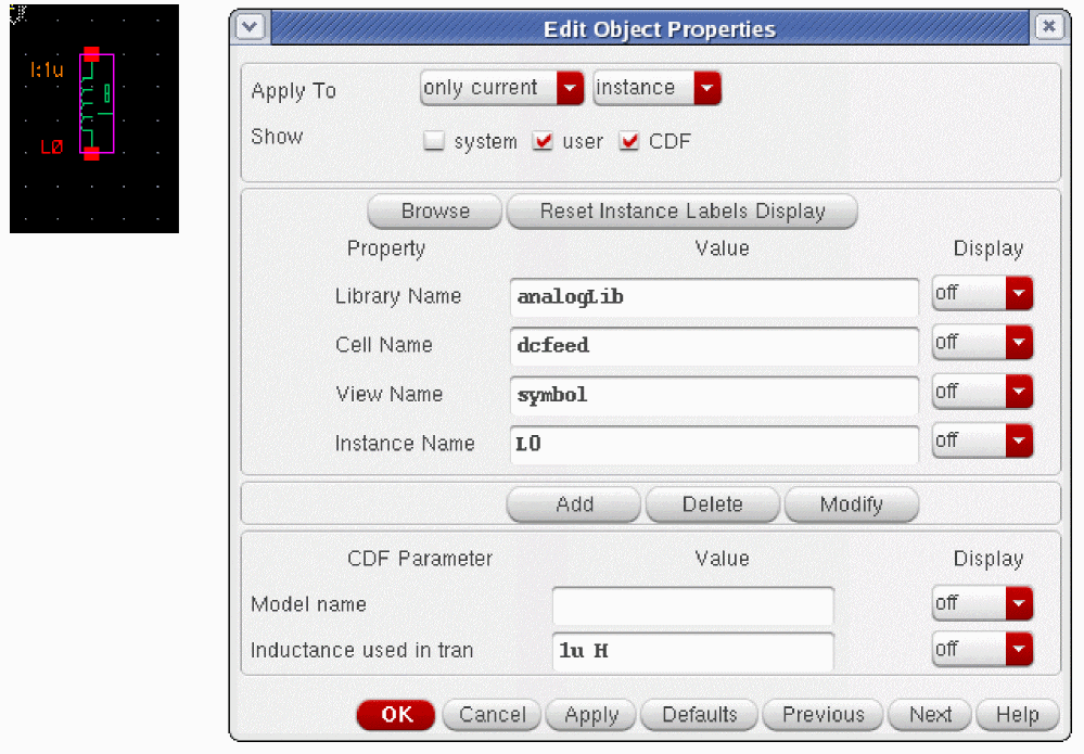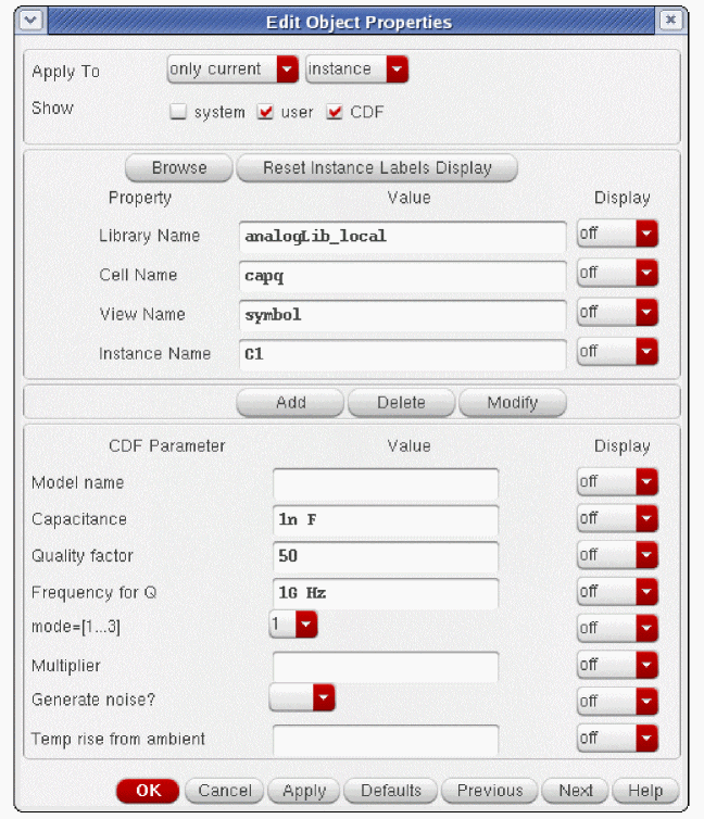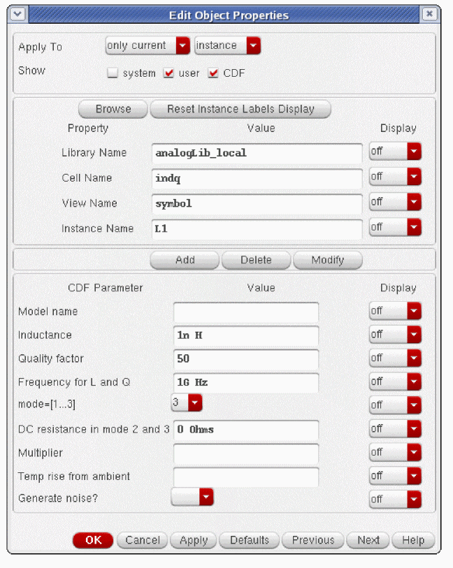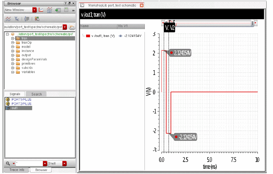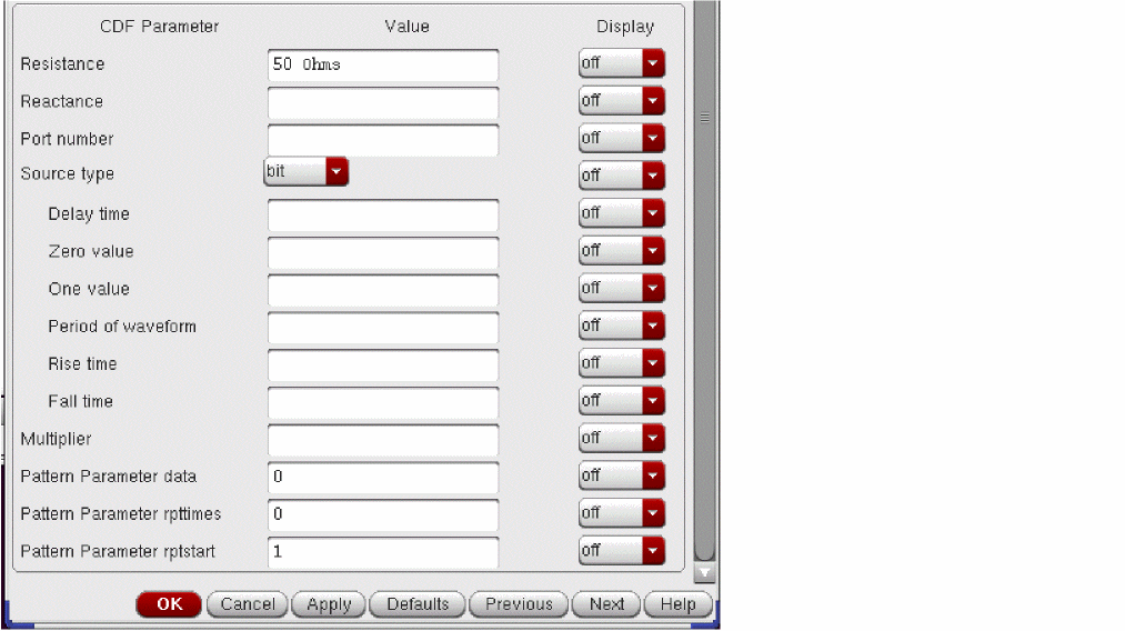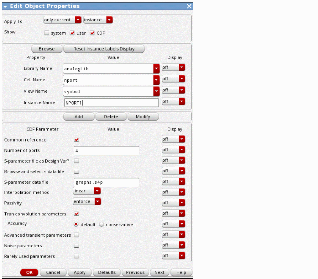 The port component, located in the analogLib library, is a superset of the existing psin component. The port component supports all the source types of the Spectre port primitive: pwl, pulse, sine, dc, and exp. In addition, it includes the bit and prbs source types. If you are using the psin component, it is highly recommended that you switch to the port component because the properties are organized in a better way, and the levels in volts peak and in dBm both cannot be set at the same time. This is easily accomplished by obtaining the properties form for psin, and changing the cell name to port. All the properties that are set in the psin component will retain their values when you make the change.