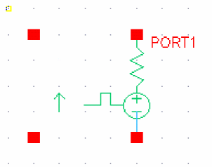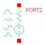 The port component is an independent resistive source tied between positive and negative terminals. It is equivalent to a voltage source in series with a resistor, where the reference resistance of the port is the value of the resistor.