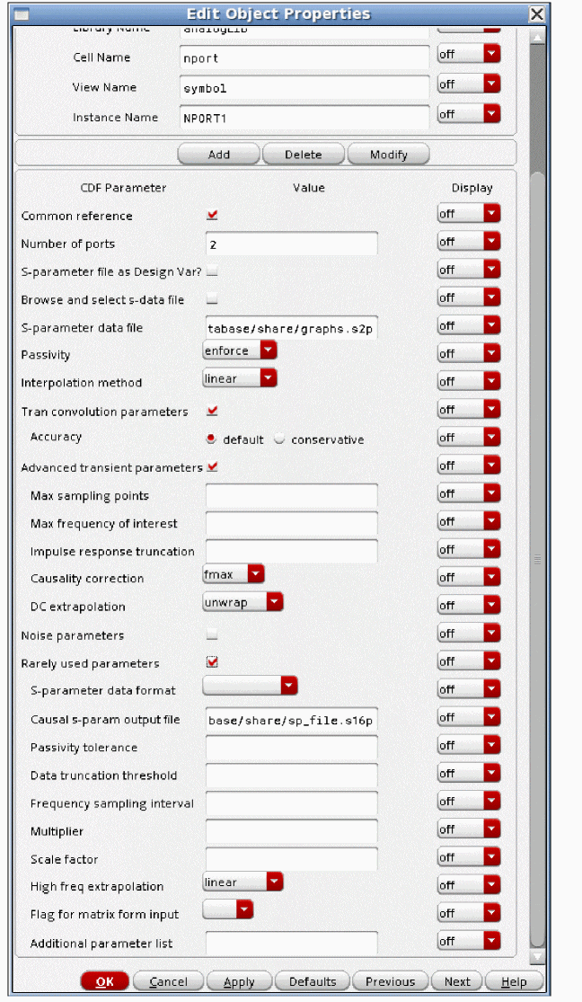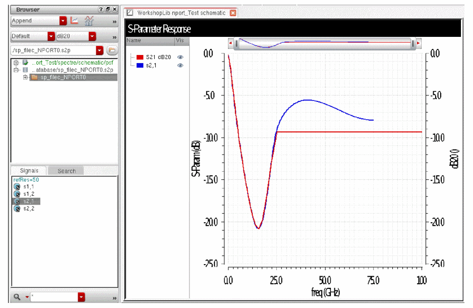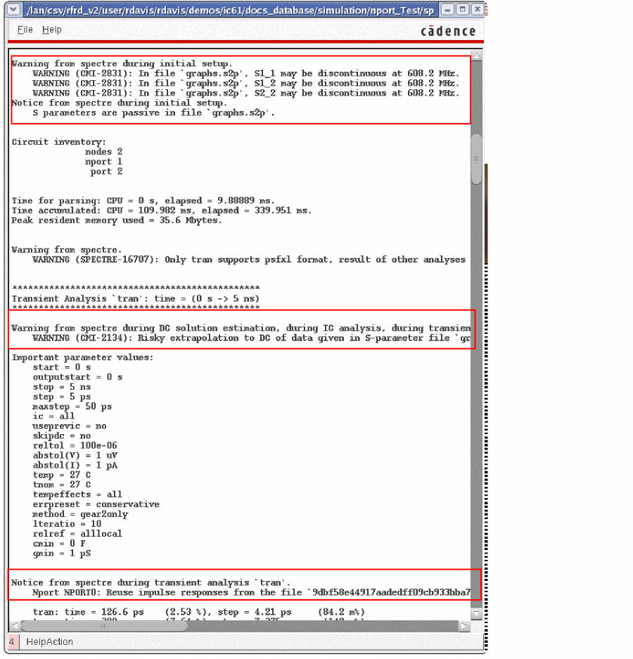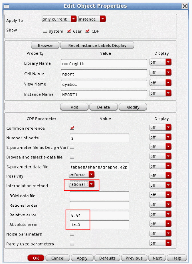 To learn the technical details about how SpectreRF converts S-parameter data to a time-domain description, see the article “Robust rational function approximation algorithm for model generation,” by C. P. Coelho, J. R. Phillips, and L. M. Silveira. This article appeared in the proceedings of the 36th Design Automation Conference, New Orleans, LA, June 1999.