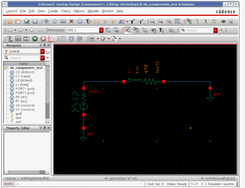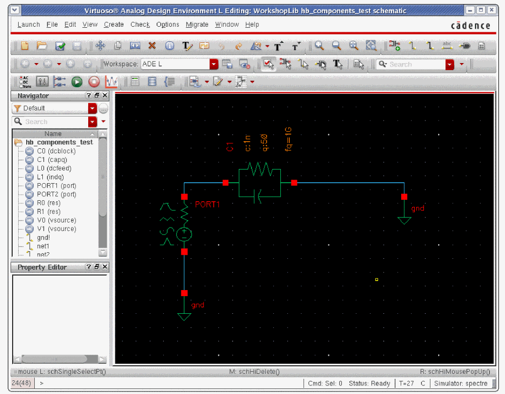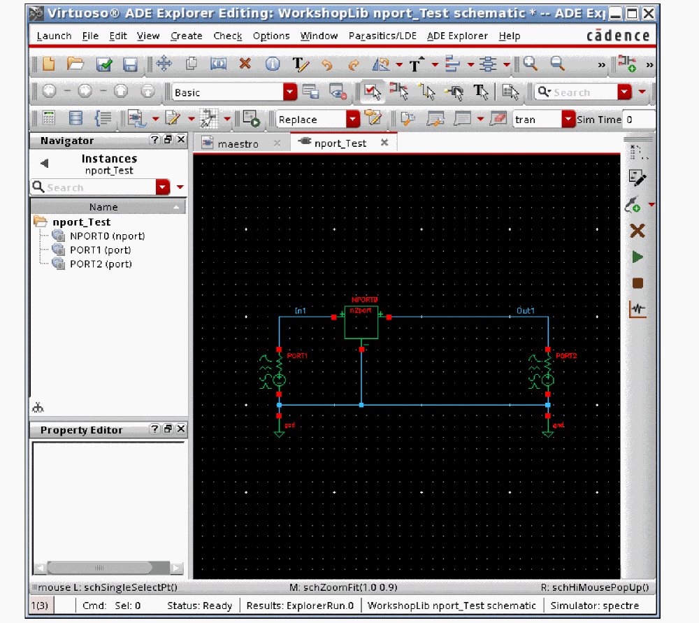 You can use the port component, located in the analogLib library, in RF circuits for Spectre® circuit simulator RF Analysis (SpectreRF) and Spectre S-parameter simulations.