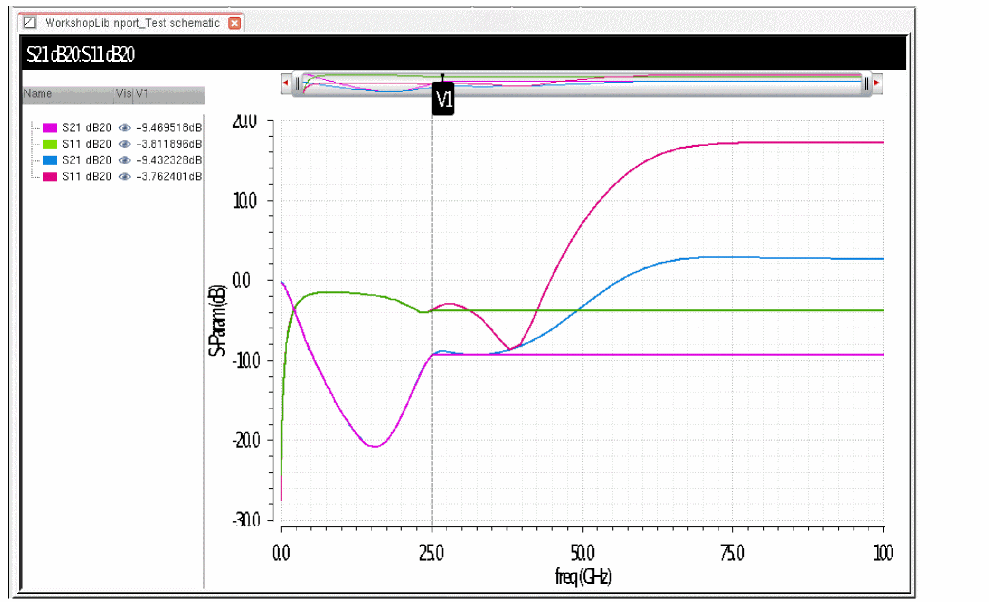 Using the VIVA Calculator in the Analog Design Environment, you can plot the following S-parameter data:
