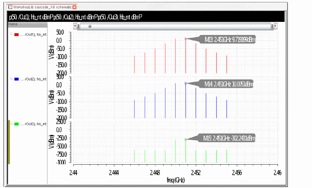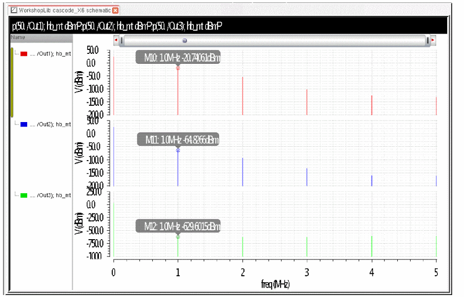 In this case, if the harmonic was specified as 3, there would be an error produced by Spectre because there is a single index in the harmonic, but there are 2 indices for all the harmonics of the existing simulation. The number of entries in the Harmonic field must match the number of input frequencies in the circuit.