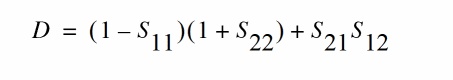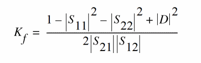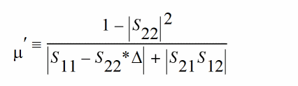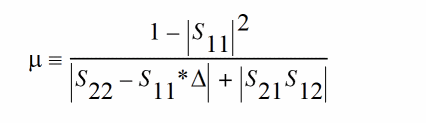 Here, Delta is the determinant of the S-parameter matrix. Having mu > 1 is the only mandatory and sufficient condition for unconditional stability of the two-port network.