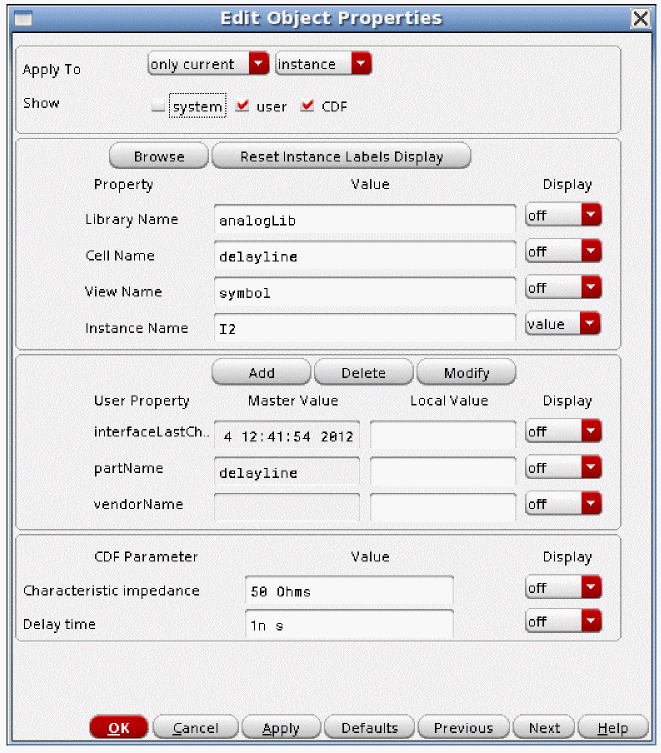 The delayline element is a lossless transmission line with a specified delay time Td and characteristic impedance Z0. It is intended for the small-signal ac, sp, and noise analyses, and the harmonic balance analysis and models ideal delays in these analyses.