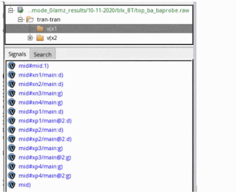 Here, the pre-layout signal v(x1.mid) is specified, therefore, the probed signals are limited to it.