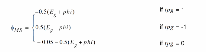 is the flat-band voltage and φMS is the work function difference between the gate material and the silicon substrate. With the following equations, the tpg (tps) parameter determines the value of φMS.