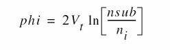 where ni is the intrinsic carrier concentration of silicon and Vt is the thermal voltage given by kT/q.