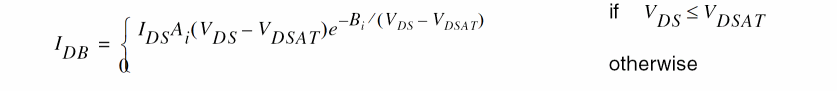 The substrate current results from impact ionization in the velocity saturation region near the drain. This impact-ionization induced current (IDB) flows between the drain and the substrate. You need both aio and bio to use the impact-ionization model.