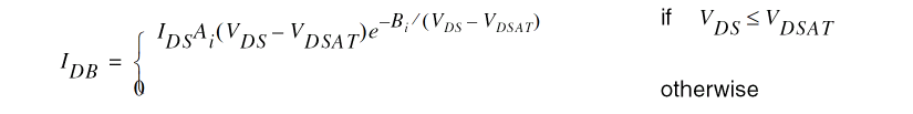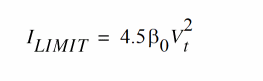 A separate model parameter, imelt, is used as a limit warning for the junction current. This parameter can be set to the maximum current rating of the device. When any component of the junction current exceeds imelt, the base and collector currents are composed of many exponential terms, Spectre issues a warning and the results become inaccurate. The junction current is linearized above the value of imelt to prevent arithmetic exception, with the exponential term replaced by a linear equation at imelt.