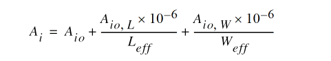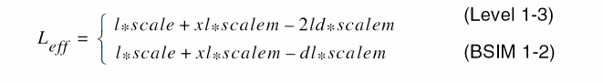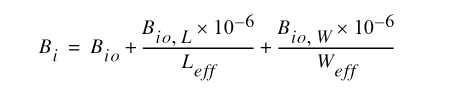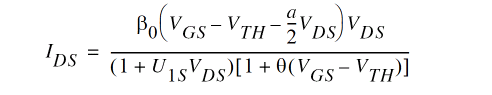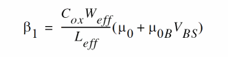 BSIM1 stands for Berkeley Short-Channel IGFET Model version-1. The BSIM1 model is a semiempirical model suitable for devices with channel length from long channel to about 0.8 μm. This model extracts all model parameters directly from physical devices. You can obtain an automated parameter extraction program, based on the HP9836 and HP4145 systems, from the ILP office, Department of EECS, University of California, Berkeley. The following table shows the correspondence between the input parameter names and the equation symbols for the BSIM1 model.
