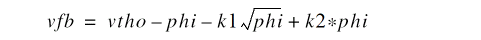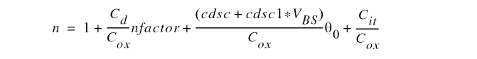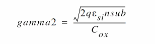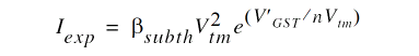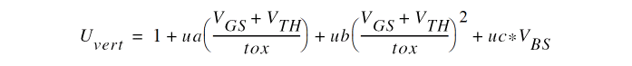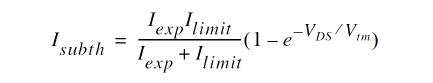 If you set subthmod to 2, a transition region between the subthreshold regions and the strong-inversion regions is created. This transition region provides smooth switching between the subthreshold and the strong-inversion regions. The following equations are model equations for the subthreshold and transition regions.