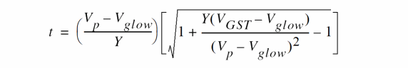 If Vglow – Vdibl ≤ VGST ≤ Vghigh + Vdibl, the device is operated in the transition region and the drain current is given by
