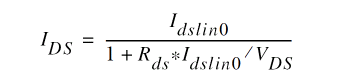 where Idslin0 is the drain current in the triode region without the presence of source and drain parasitic resistance.
