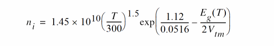 where Eg(T) is the energy band gap at temperature T. The equation for Eg is shown in BSIM3v2 Level-10 Model (bsim3)