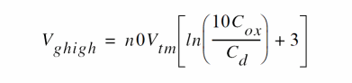 where Idlow is the subthreshold current evaluated at VGST = Vglow –Vdibl, and Idhigh is the strong-inversion drain current evaluated at VGST = Vghigh + Vdibl.