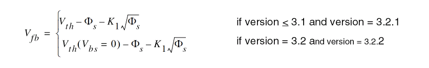 capmod = 3 supports only zero-bias Vfp; that is, Vfb is calculated from bias-independent Vth, regardless of the version number. This is different from capmod = 1 and 2.