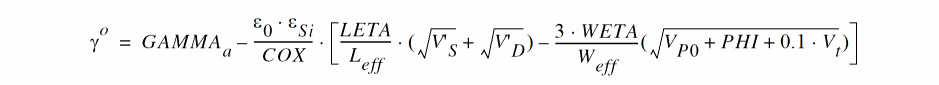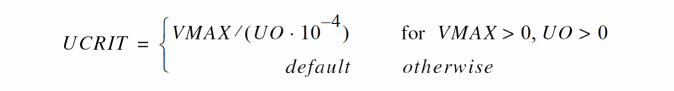 The basic intrinsic model parameters COX, GAMMA, PHI, VTO, KP, and UCRIT are related to the fundamental process parameters TOX, NSUB, VFB, UO, VMAX, respectively, similarly as in early SPICE models.