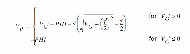 A simpler model using the five intrinsic capacitances corresponding to the equivalent circuit shown in Equivalent Circuit can be obtained when neglecting the slight dependence on the slope factor n, resulting in the following simple functions: