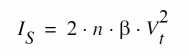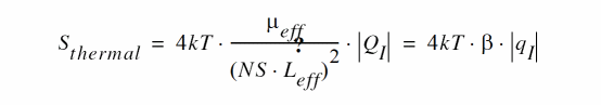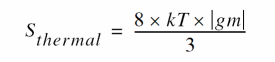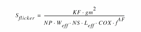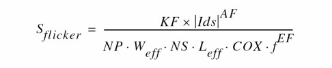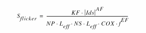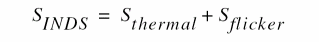 The noise is modeled by a current source INDS betwe en intrinsic source and drain. It is composed of a thermal noise component and a flicker noise component and has the following power spectral density (PSD):