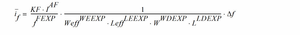 Where KF, AF, FEXP, WEEXP, LEEXP, WDEXP and LDEXP are model parameters, I is the current, W and L are the device width and length, Weff=W-2ETCH and Leff=L-2ETCHL.