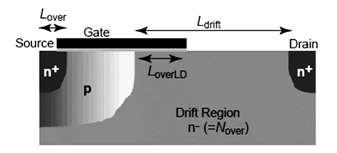 Figure -2 Schematic of the typical LDMOS structure and device parameters
