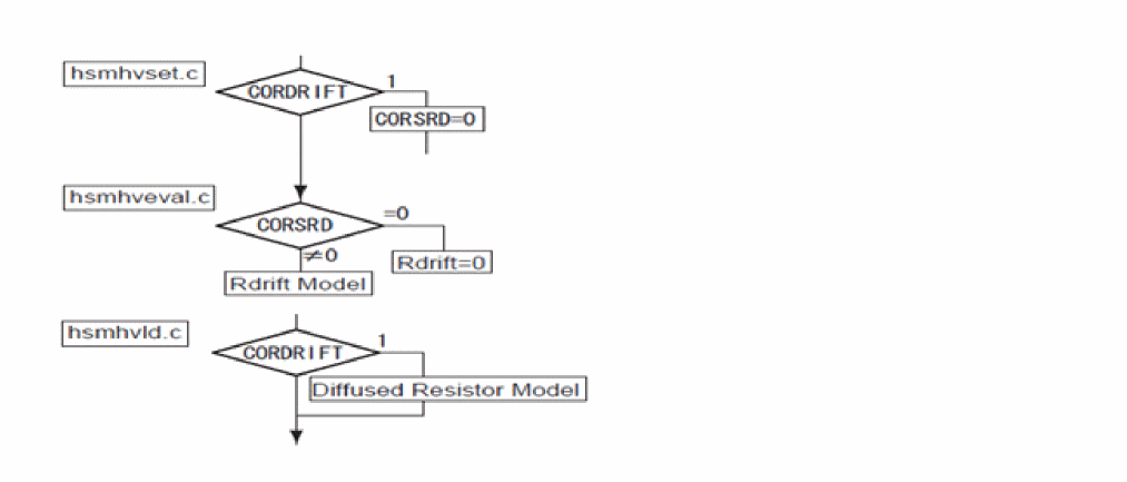 - The new flags CORS and CORD are introduced for activation of the newer model for drift region resistance (CORDRIFT=1) on the source and the drain side, respectively.