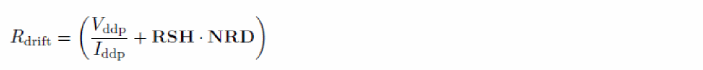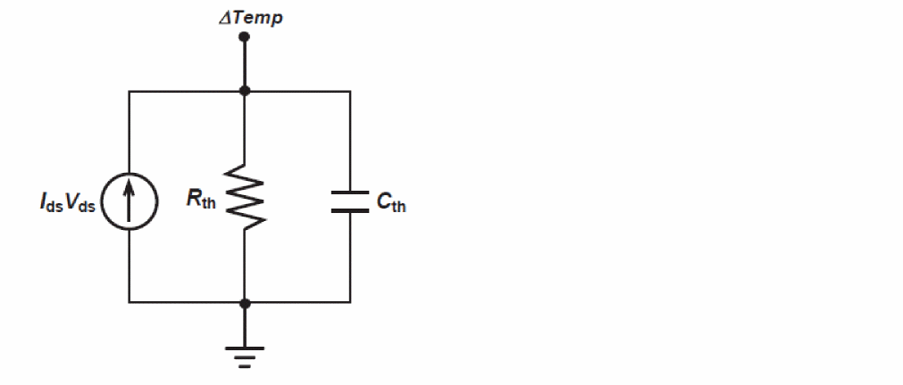 The self-heating effect is modeled as a C-R thermal network with a heat resistance parameter RTH0 and capacitance parameter CTH0. The flag COSELFHEAT must be equal to 1 and RTH0 must not be equal to zero to activate this model. The SHE should be switched on/off only with the model flag COSELFHEAT.