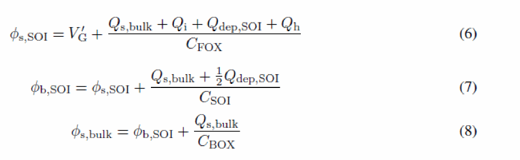 Eqs. (6)– (8) are solved simultaneously within HiSIM SOI. For the body-tied case, the potential node