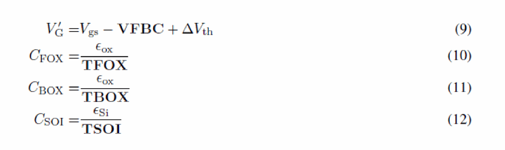 where VFBC is the flat-band voltage, TFOX is the physical gate-oxide thickness, and