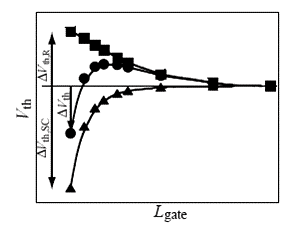 is the threshold voltage shift in comparison to the threshold voltage of a long-channel transistor [4].