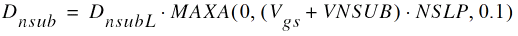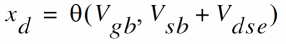 In addition to changing the surface potentials, poly correction affects the linearization of inversion charge and intrinsic charges. The expressions in sections “Drain Current” and “Intrinsic Charges” include these corrections.