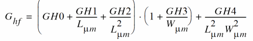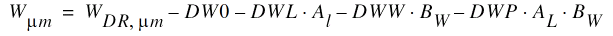 The drawn channel dimensions are denoted as LDR, WDR (in m) or as LDR,μm, WDR,μm (in μm). The minimum device dimensions for a given technology are LREF, WREF (in m) or as LREF,μm, WREF,μm (in μm).