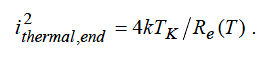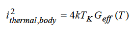 where k is Boltzmann’s constant, TK is the device temperature (in Kelvin, including the effect of self-heating), and Geff is the effective conductance of the resistor (at the temperature T ). Similarly the thermal noise of each end resistances is