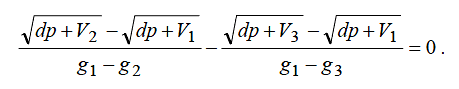 There are at least three approaches to determine the basic depletion pinching parameters, for diffused resistors. If the conductanc e g is known from measurements at three different biases, then the parameters can be calculated as follows. For these biases, (Vi=V+2V1c for the ith values of V and V1c)