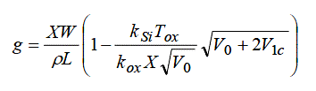 where X, W and L are the thickness, width, and length of the polysilicon film that makes up the resistor, kSi and kox are the relative dielectric permittivities of silicon and silicon dioxide, Tox is the oxide thickness,
