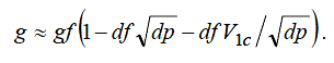 The fundamental depletion (p-n junction or MOS) pinching component of the model is given earlier. Velocity saturation and self-heating affect the bias dependence for E=VL significantly different from zero. Therefore the basic parameters of the model for one geometry, gf, df, and dp, should come from analysis of data where depletion pinching dominates, i.e. from low V, ideally extrapolated to, or measured (from small-signal AC excitation) at V=0. (The large signal conductanc eg=IV cannot be directly calculated at V=0, but is equal to the small signal conductance g=I/V at that bias).