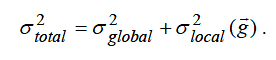 The total variance of a parameter is the sum of the variances of the global variance (which is independent of geometry) and the local variance (which depends on geometry g , which can include area, width, and length),