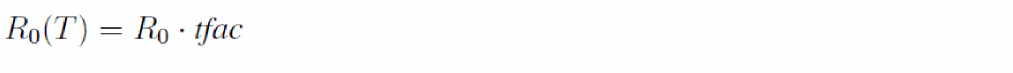 where R0 is the nominal value of the zero-bias resistance at the nominal temperature tnom and tfac is the resister temperature factor, given by