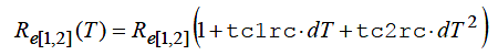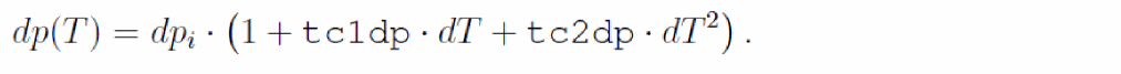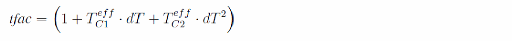 where dT is the temperature difference (including self-heating) with respect to tnom, and TeffC1 and TeffC2 are first (linear) and second (quadratic) order effective temperature coefficients. Smooth limiting of the resistance temperature factor tfac is implemented to a minimum value of 0.01. The conductance factor is then