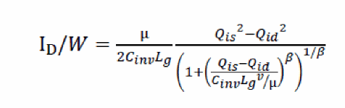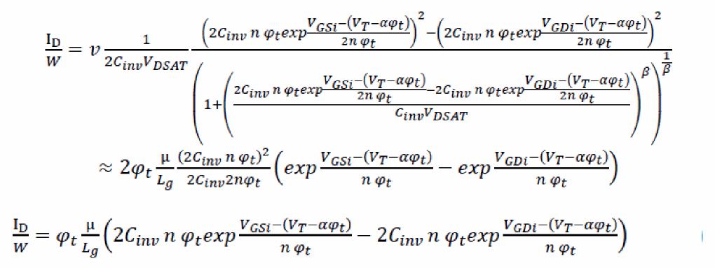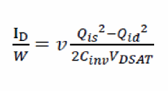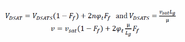 Equation 8 is similar to the EKV model used for long channel MOSFETs. In shorter channel velocity saturation (Vsat) limit,