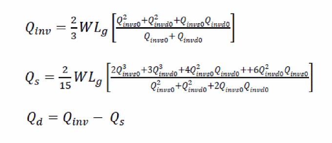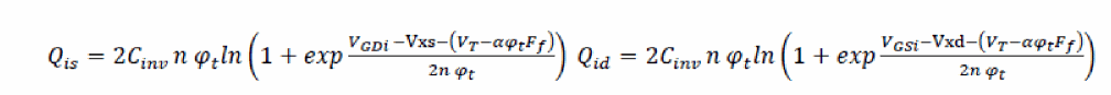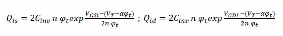 The charge equations above are needed to model the subthreshold regime accurately. In the subthreshold regime the above equations are reduced to: