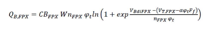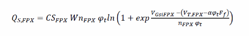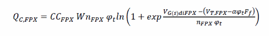 The capacitance associated with the gate field plate extension on the source-side is computed using similar method (instead of adding additional transistors for ease of computation). The capacitance is implemented only if flagfpxs=1.