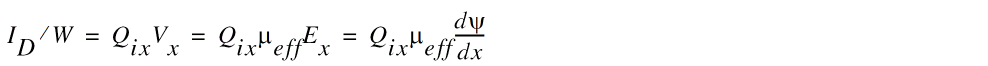 Here, QGi(x) is the areal charge density at any point x in the channel. QGi(x) and its dependence on bias depends on the mode of transport of carriers in the channel.